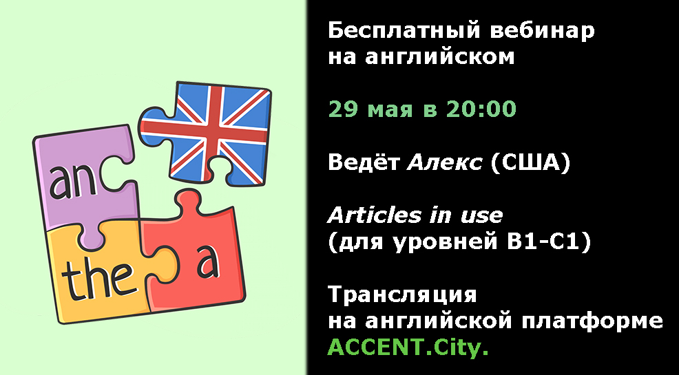 Бесплатный вебинар "Articles in use" (для уровней В1-С1)