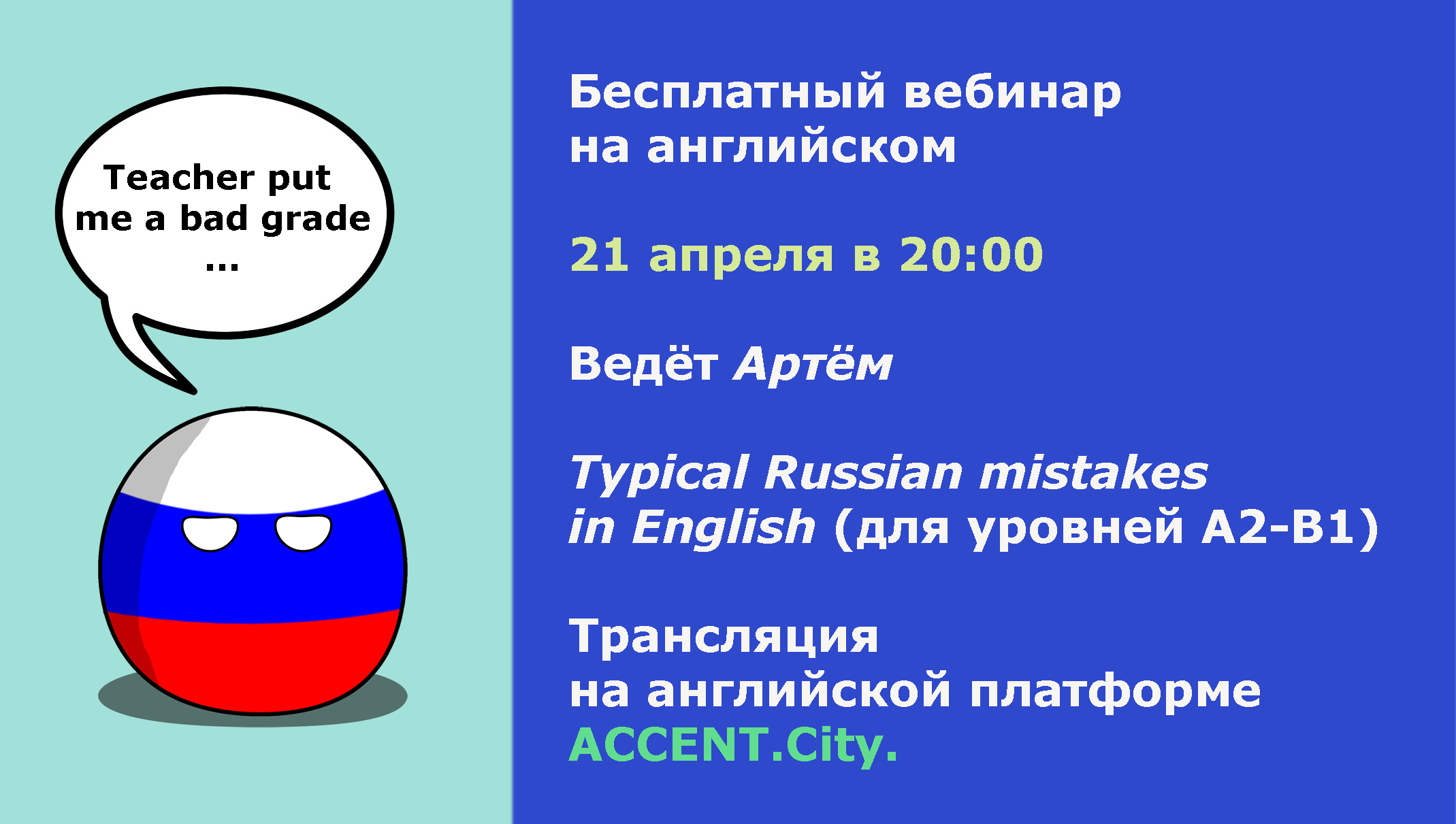 Бесплатный вебинар "Typical Russian mistakes in English" (для уровней А2-B1)