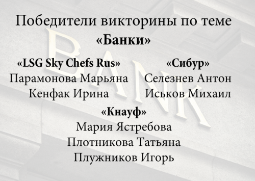 Мы рады объявить победителей нашей викторины, которая прошла в июле и была посвящена теме банков.