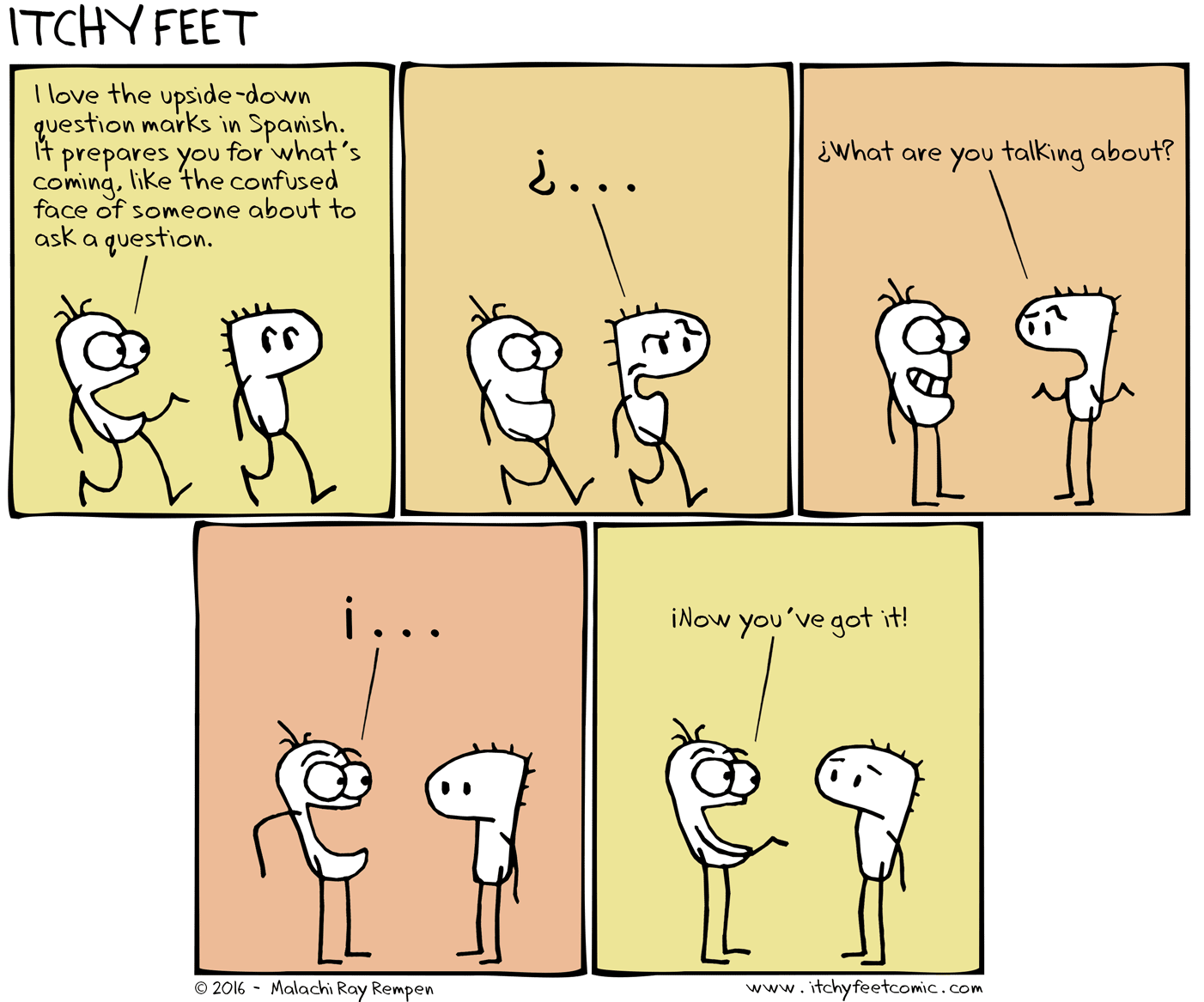 А между тем перевернутые знаки потихоньку исчезают и собственно из испанского языка – и виной всему опять-таки технический прогресс: автоматическое распознавание речи в смартфонах не воспринимает вопросительные и восклицательные интонации, и уж тем более в нем не заложена такая веселая пунктуация. Кажется, мы вновь теряем что-то прекрасное.
